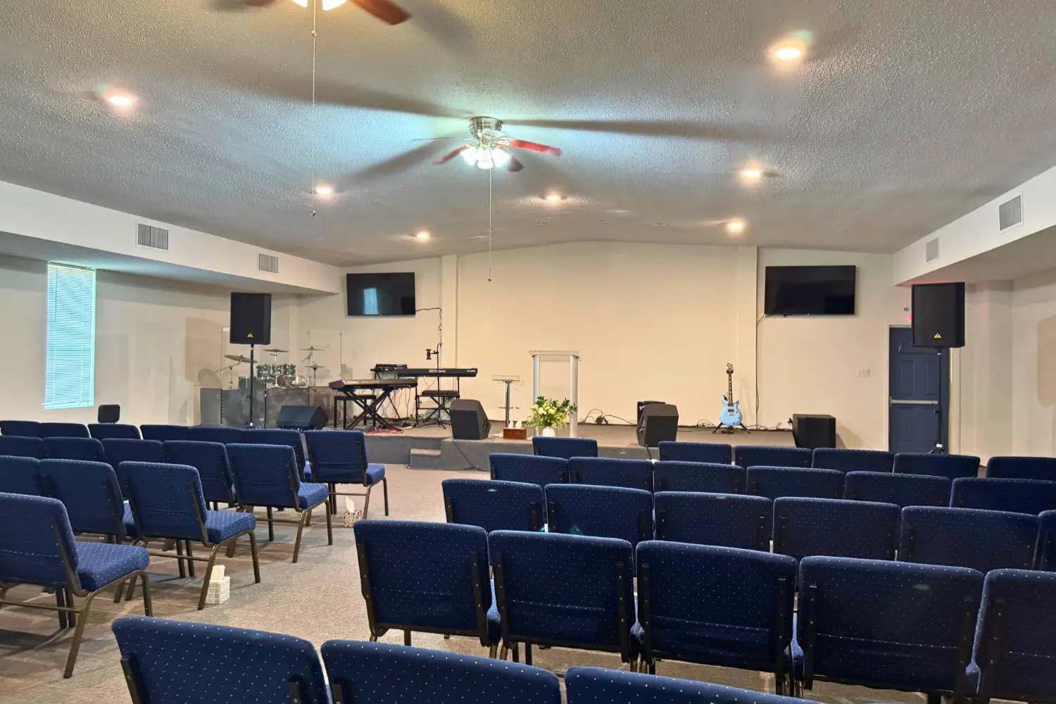 Recently renovated, the property features a functional sanctuary, classrooms, office space, and a kitchen, providing an efficient and adaptable environment for immediate occupancy.